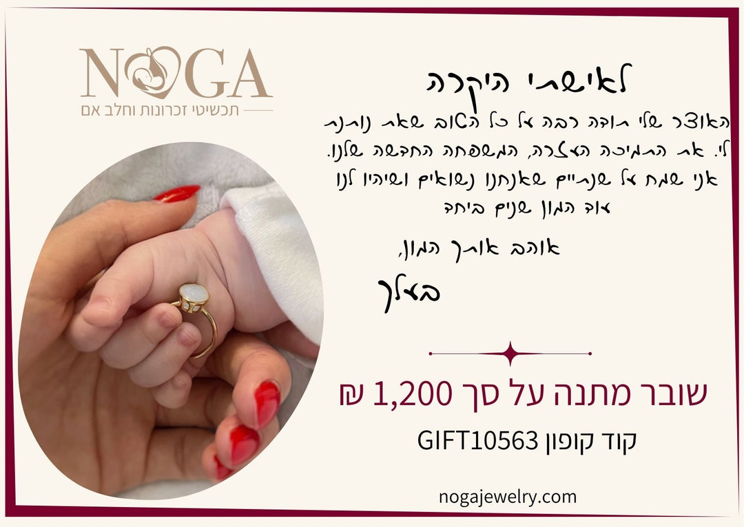 את התכשיטים של נגה אני מכירה עוד מהילדה הראשונה וכל תכשיט עם אבן חלב שהזמנתי ריגשה אותי יותר מזכירה לי את כל הרגעים המושלמים בהנקה וגם את ההתחלות הלא פשוטות של הנקה מלאה אחרי ניתוחי חירום וההתעקשות שלי לא לוותר גם כשכאב והידיעה שהתכשיטים יעברו לבנות שלי כשיגדלו זה שווה לי הכול תודה רבה 🙏🙏🙏