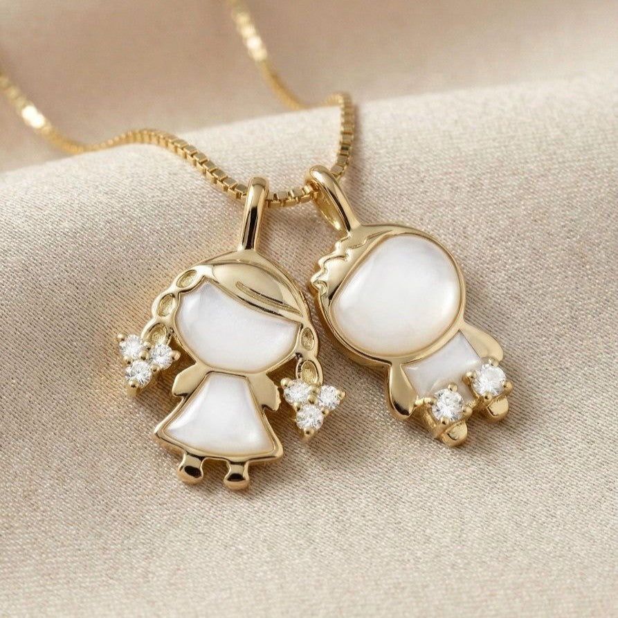 תליון ילדה מתוקה, מלא בחלב האם הייחודי שלך, ומשובץ ביהלומים או זירקונים לבחירתך. מגיע בשני גדלים.